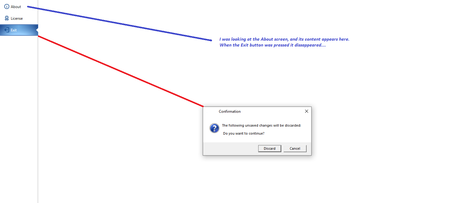 When the cancel button for the MessageBox is pressed, the user is thrown back to the last tab used, and the backstage closes. We need them to stay in the backstage, as they wanted to be there (and we have other links they may want to use).