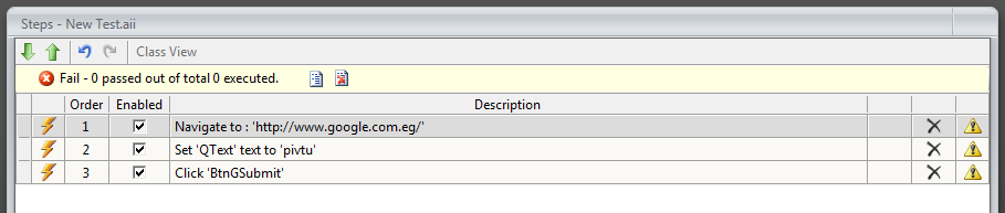 When I made execute for a simple test case the result was "Fail - 0 passed of 0 executed"