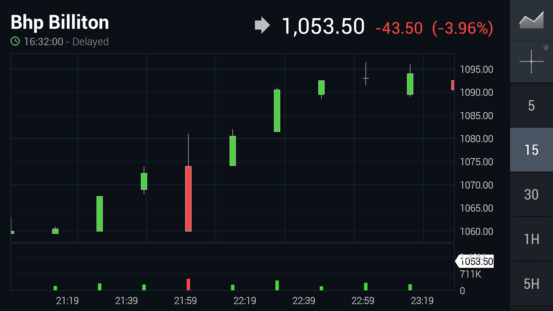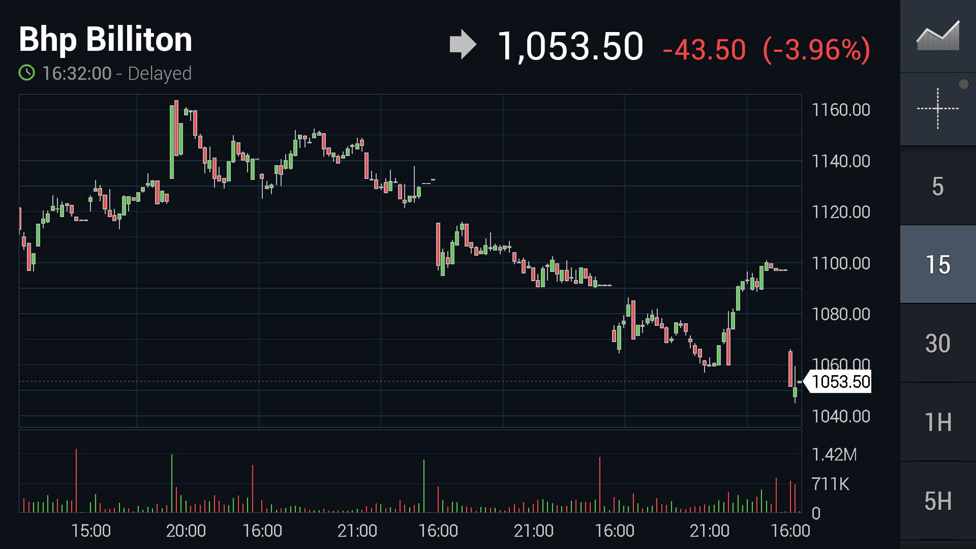 Referring to the attached screenshots, the vertical axis automatically adjusts itself so that the candlesticks are always displayed.