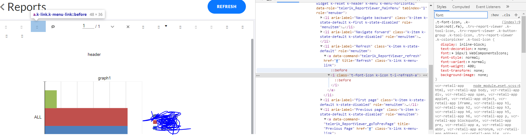 I have angular app and use progress/telerik-angular-report-viewer. I have a report from back-end and display it on the page, but there are no any reporting icons. I checked style rules that can be overwritten but everything looks good.