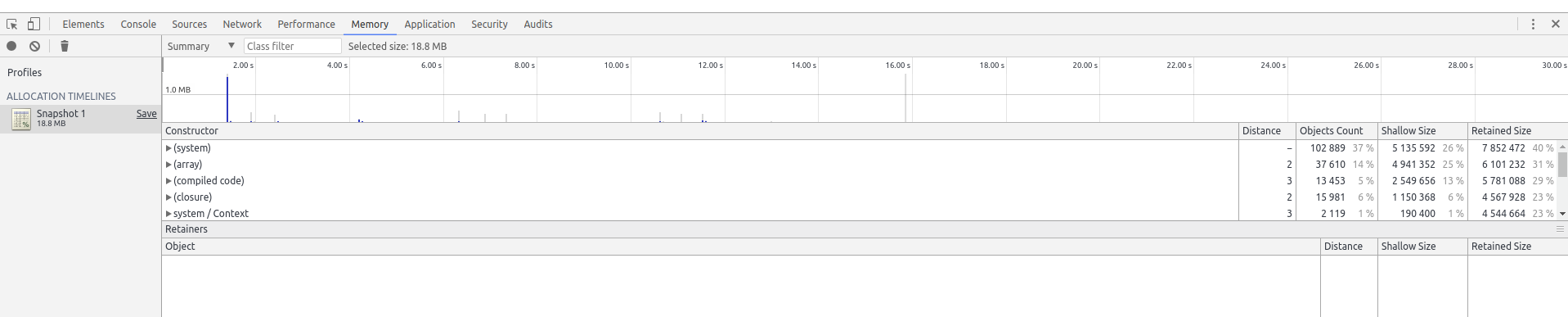 * Used an allocation timeline to better visualize leaks