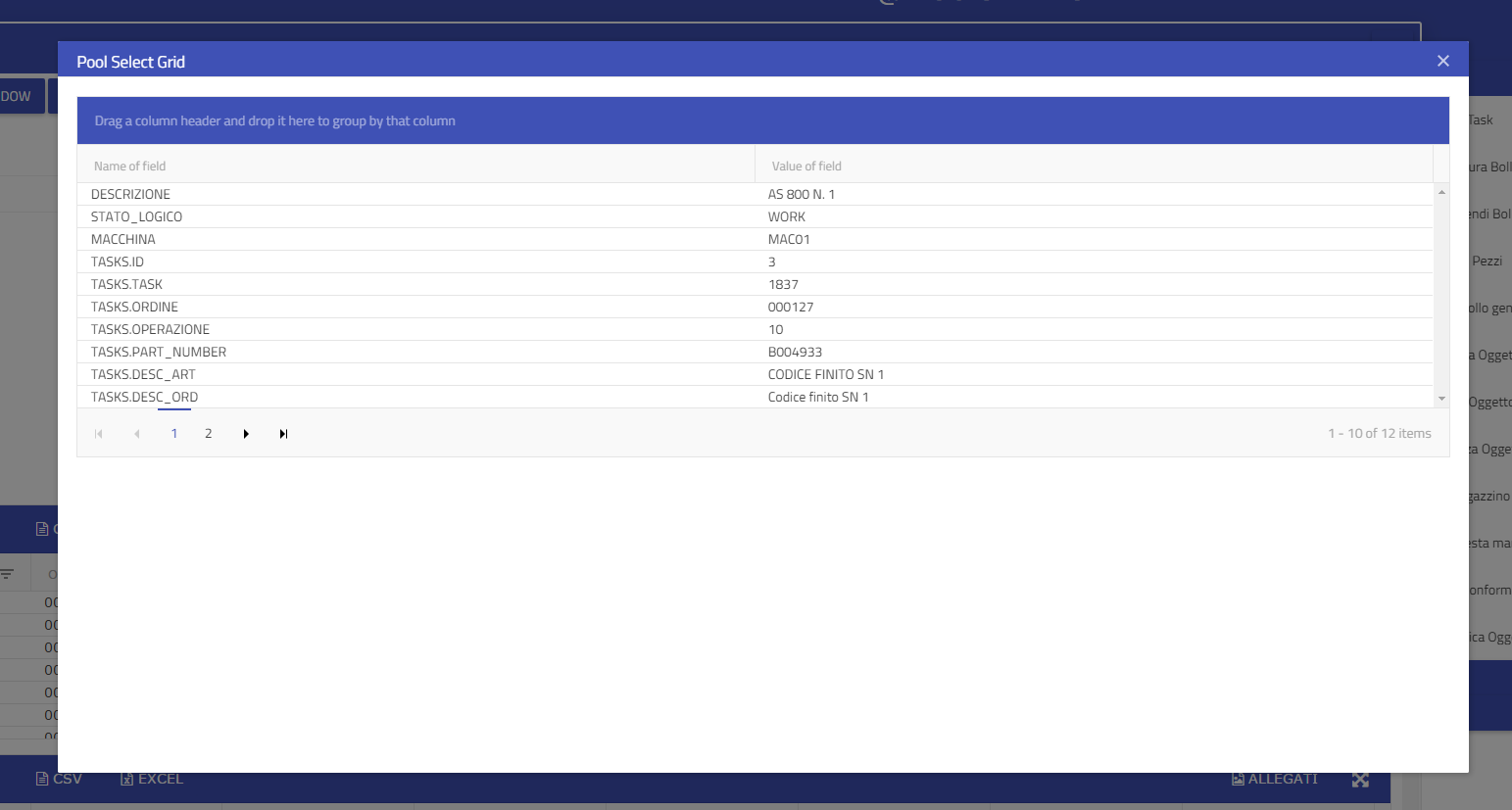 angular.element($('#bodyall')).scope().ctrl.poolGridOpts = { dataSource: { data: poolGridData, pageSize: 10 }, pageable: true, sortable: true, groupable: true, columns: [ { field: "field", title: "Name of field" }, { field: "value", title: "Value of field" } ] };I create the option object for the grid and I set the data source as array of object field/value