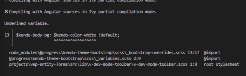 So far our library structure was that we create libraries which use kendo and those libraries use scss kendo variables. However since we updated to angular 15 and the latest kendo libraries those things don't work anymore.