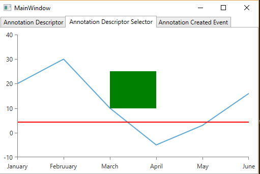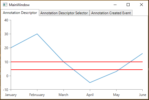 <telerik:ChartAnnotationDescriptor.Style> <Style TargetType="telerik:CartesianGridLineAnnotation" BasedOn="{StaticResource CartesianGridLineAnnotationStyle}"> <Setter Property="Value" Value="{Binding StartValue}" /> <Setter Property="Axis" Value="{Binding VerticalAxis, RelativeSource={RelativeSource AncestorType=telerik:RadCartesianChart}}" /> <Setter Property="Stroke" Value="Red" /> <Setter Property="StrokeThickness" Value="2" /> </Style></telerik:ChartAnnotationDescriptor.Style>I hope this helps. If you need any further assistance please let me know.