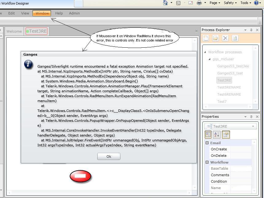 We are using telerik rad menu control to list out rad menu items in silverlight project . Sometimes it's working well, but sometimes it's shows control error message.
