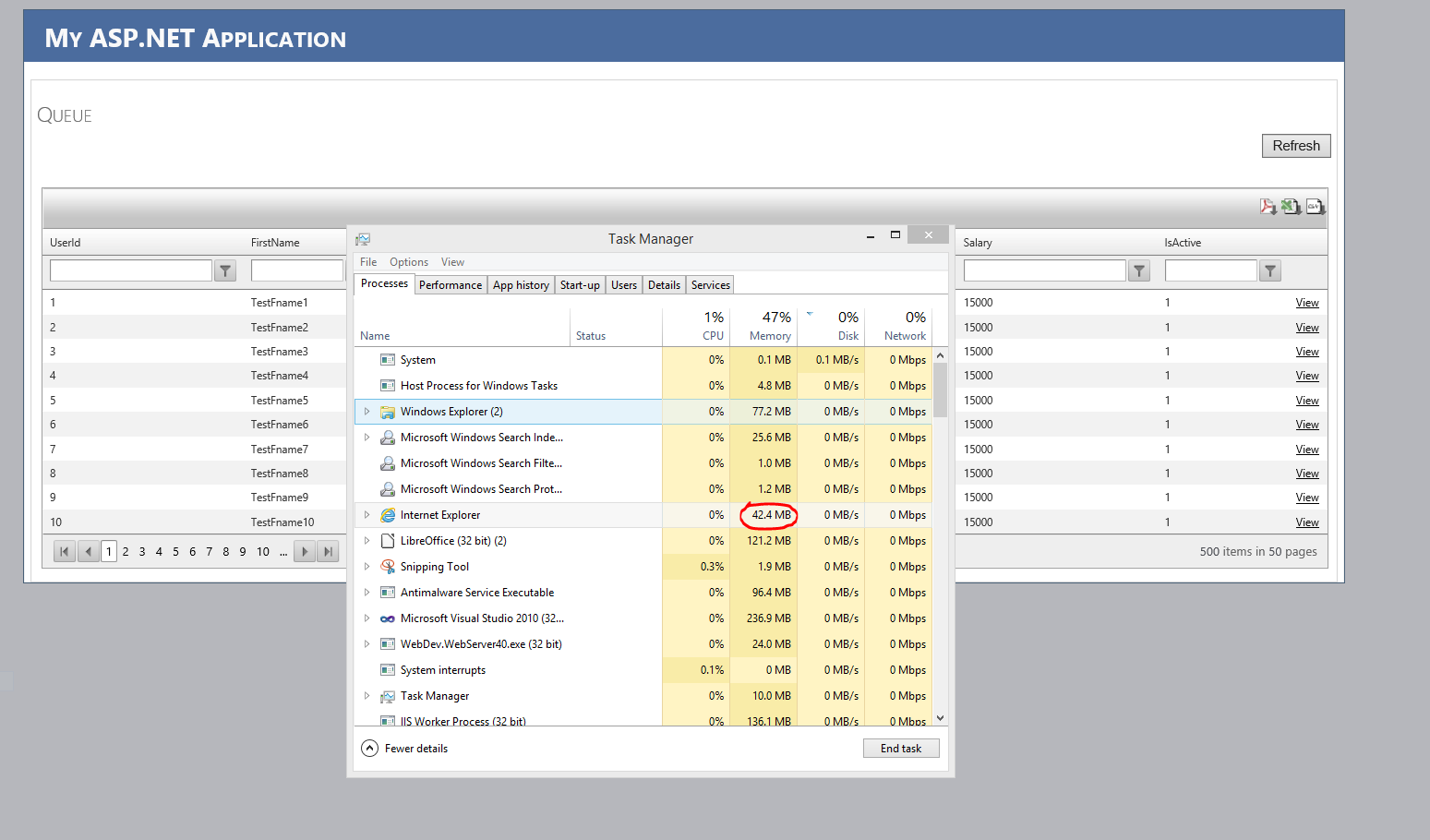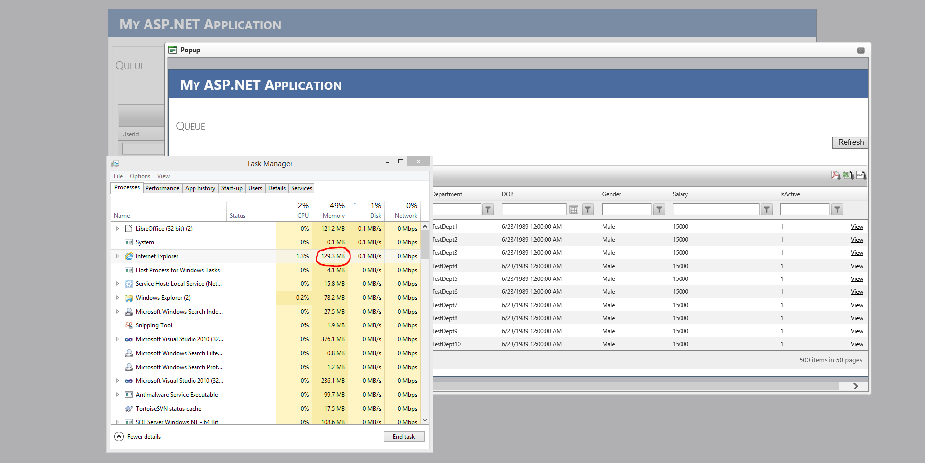 User open some RadWindows in the same page, so the memory after some minutes increases of many mb.