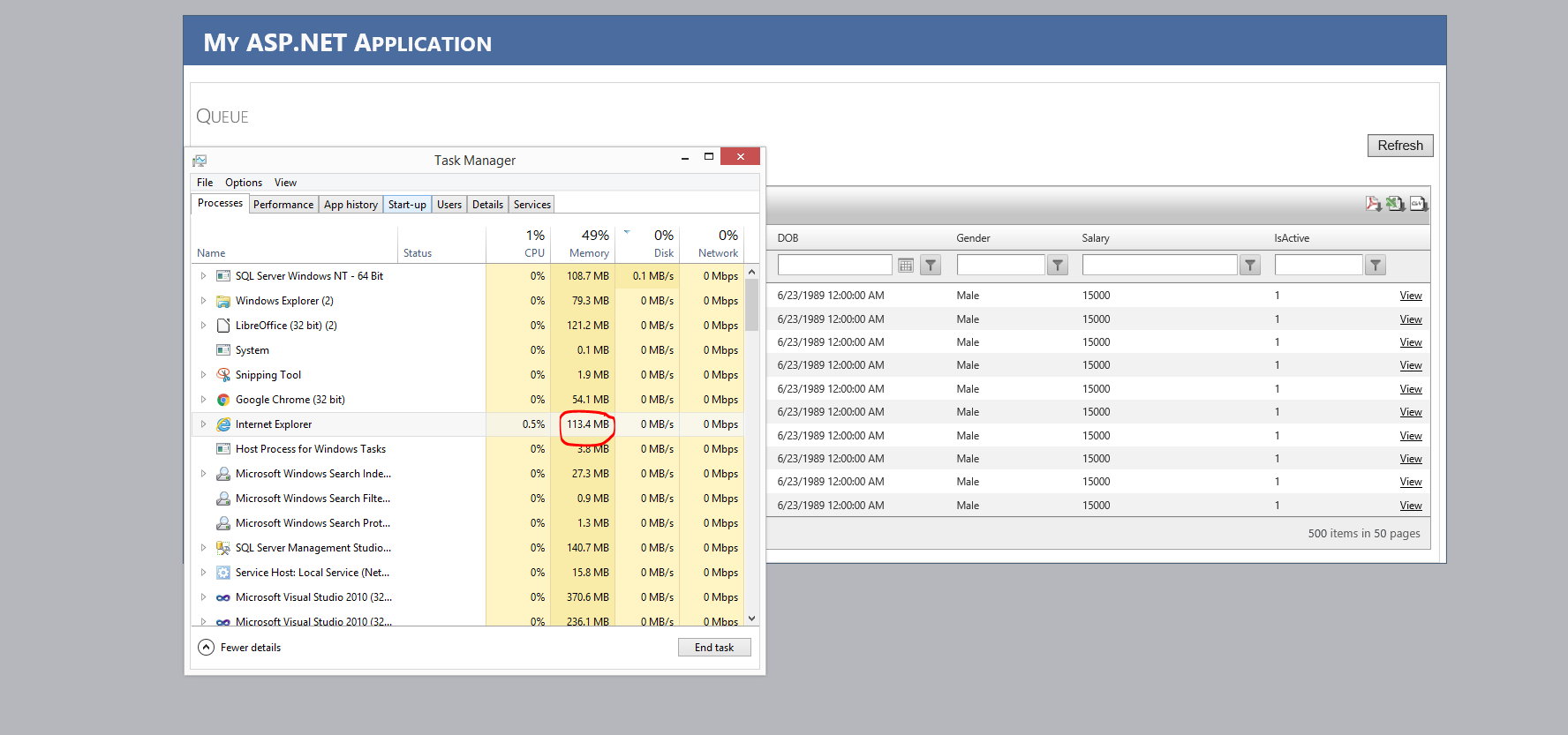 Issue which I am facing is, when I do action in application, Memory usage increases but not decrease automatically.