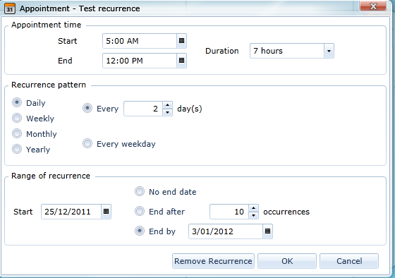 BEGIN:VEVENTDTSTART;TZID=E. Australia Standard Time:20111225T050000DTEND;TZID=E. Australia Standard Time:20111225T120000SUMMARY:Test recurrenceUID:a49ee7e8-7813-4348-b7d7-0fdba1934521IMPORTANCE:NoneRRULE:FREQ=DAILY;UNTIL=20120103T020000Z;INTERVAL=2;BYDAY=SU,MO,TU,WE,TH,FR,SAEND:VEVENT