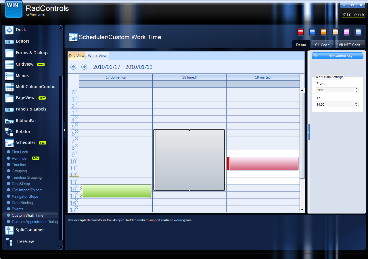 3. In the event RadScheduler.AppointmentFormatting I add the code suggested by you and Emanuele.