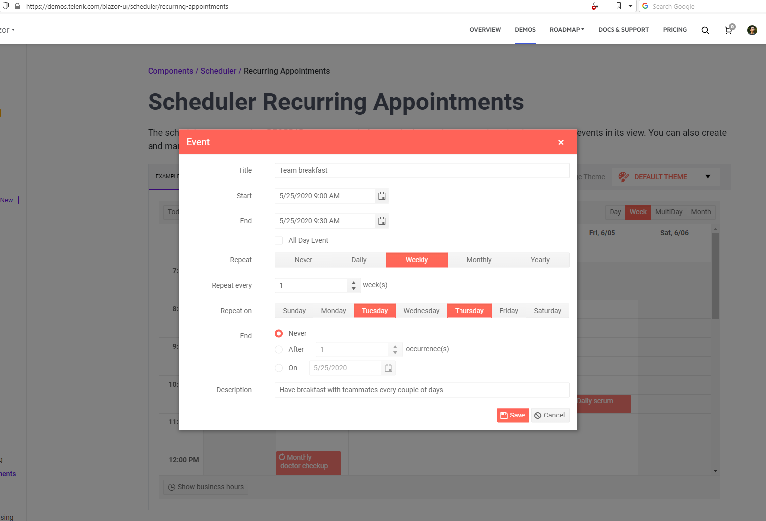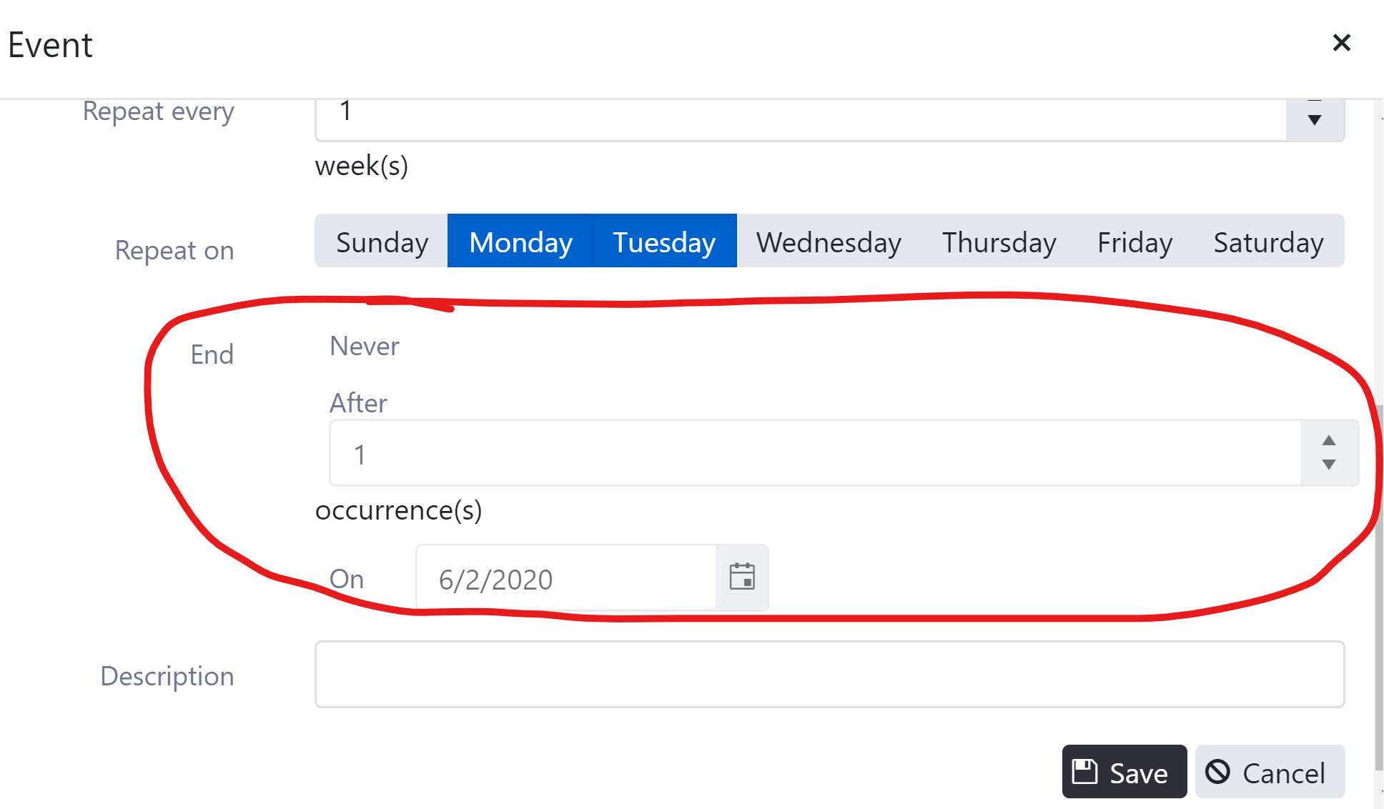 Per the attached image, when I edit or create an appointment, the UI shows that the "End" field inputs are disabled. I found they are disabled with a particular css class, so it makes me think that I'm missing some sort of parameter or model field that the component is looking for.
