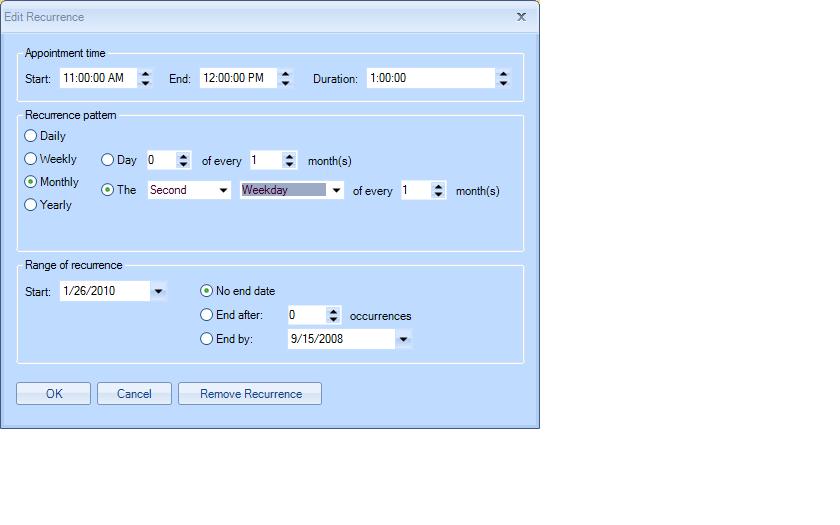 every second week of every month starting 1/26/2010 until no end date