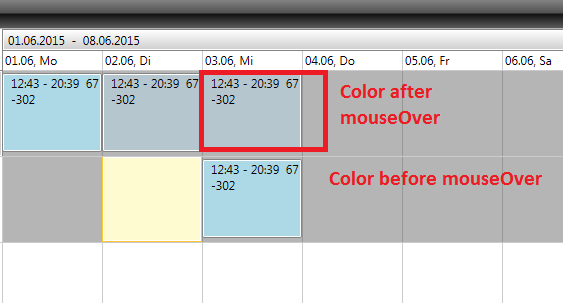 <telerik:RadScheduleView x:Name="ScheduleView" AppointmentsSource="{Binding Workdays, Mode=OneWay}" SpecialSlotsSource="{Binding ReadOnlySlots, Mode=OneWay}" ResourceTypesSource="{Binding AccountResourceTypes, Mode=OneWay}" CategoriesSource="{Binding Categories, Mode=OneTime}" CurrentDate="{Binding CurrentDate, Mode=TwoWay}" IsInlineEditingEnabled="False" ShowAppointmentDeleteButton="False" Grid.Column="1" ShowDialog="RadScheduleViewShowDialog" Visibility="{Binding HasAccounts, Converter={StaticResource BoolToVisibilityConverter}}" FirstDayOfWeek="Monday" Margin="0,-1,0,1" MinAppointmentHeight="80" >But every time i hover over an appointment it changes its background color and stays this way,