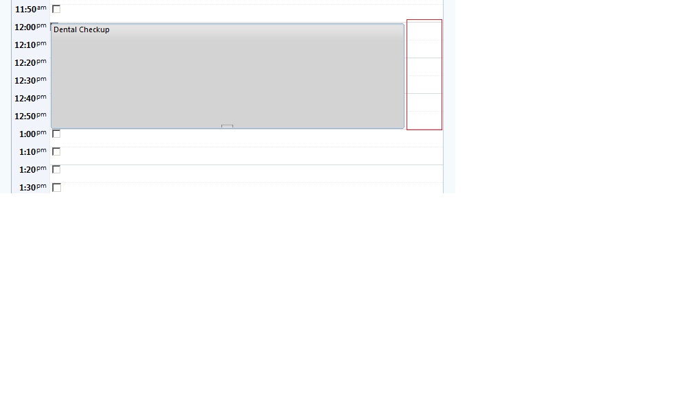 PFA the screeshot, please check the red marked area, it would be great if you can tell me the reason why the first two appoiontments(green and pink) occupied whole row where as Dentist appointment (blue one) is not occupying the whole row.