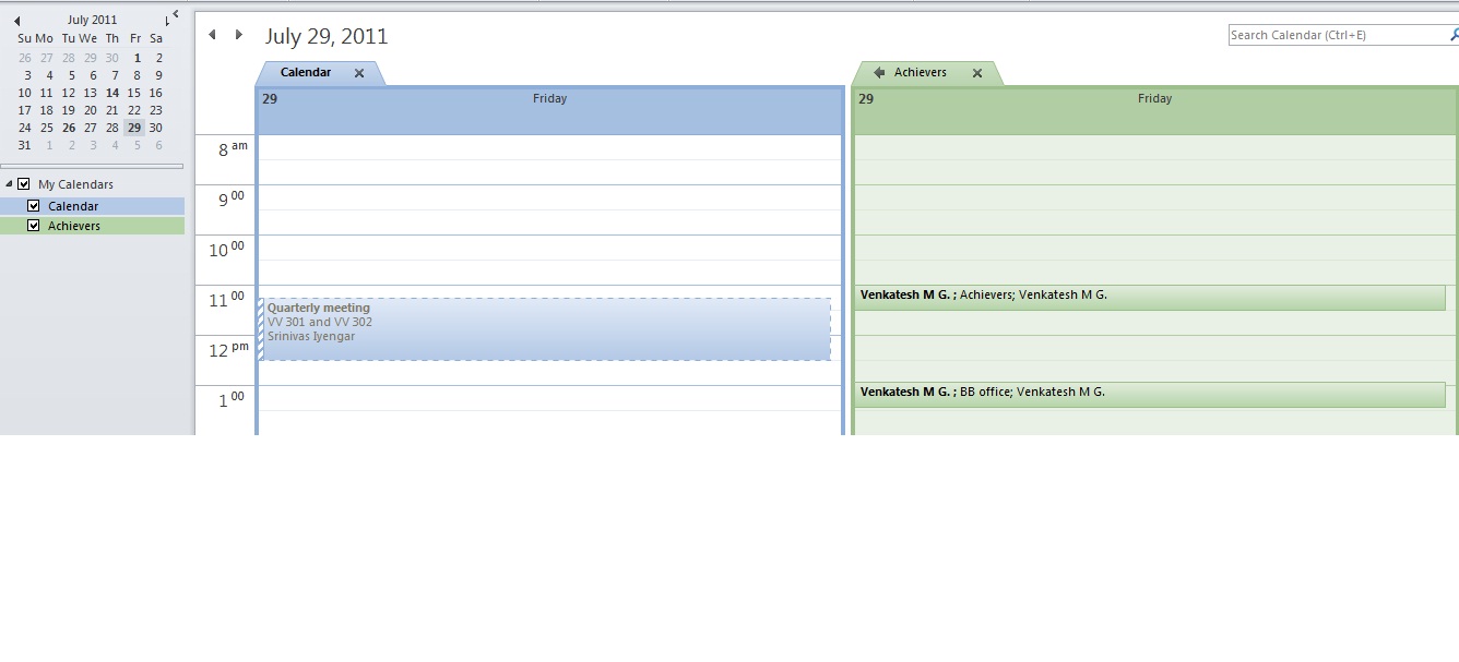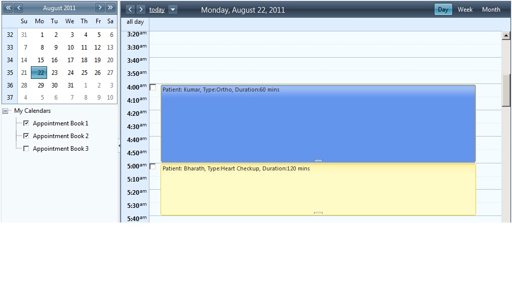 Currently my scheduler displays the appointments from different appointment books in one window(box) but with different colors. I like to show appointments of each appointment book in different windows adjuscent to each other like in outlook calendar.