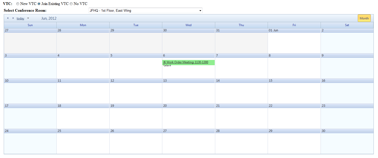 <telerik:RadScheduler ID="rsVTC" runat="server" DataStartField="dtStartDateTime" DataEndField="dtEndDateTime" DataKeyField="intRoomScheduledId" DataSubjectField="Title" OverflowBehavior="Expand" SelectedView="MonthView" DayView-UserSelectable="false" WeekView-UserSelectable="false" MultiDayView-UserSelectable="False" TimelineView-UserSelectable="False" Skin="Office2010Blue" Width="100%" AllowDelete="false" AllowEdit="false" AllowInsert="false"> <AppointmentTemplate> <div> <asp:LinkButton ID="lnkVtcViewRequest" runat="server"><%# Eval("Subject")%></asp:LinkButton> </div> <div> <asp:LinkButton ID="lnkVtcSelectRequest" runat="server" Text="Select" /> </div> </AppointmentTemplate> </telerik:RadScheduler>