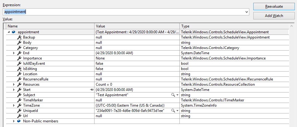 I noticed the table definition for SqlAppointments has the column definition SqlAppointmentId as type Int. I expected to find a property of type Int in the Appointment class, but found only the property UniqueID of type string.
