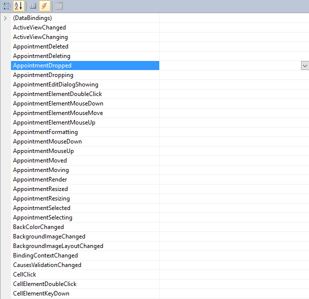 public Form1(){ InitializeComponent(); this.radScheduler1.Appointments.CollectionChanged += Appointments_CollectionChanged;}private void Appointments_CollectionChanged(object sender, Telerik.WinControls.Data.NotifyCollectionChangedEventArgs e){ if (e.Action == NotifyCollectionChangedAction.ItemChanged) { Console.WriteLine(e.PropertyName + " | " + e.Action); }}I hope this helps. Please let me know if you need further assistance.