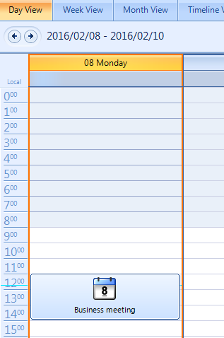 It is not recommended to use a single Appointment from 9:00 AM to 6:00 PM to indicate the work time for a person because that way it is not possible to display in a convenient way the other events during the day. RadScheduler offers work time for its DayView to specify a predefined range of hours, which can be specified within the timeline to make it easier for end-users to carry out scheduling. Please refer to the Scheduler >> Day View help article >> Changing the work time section. Thus, you can add an Appointment from 2 PM for the Dr's meeting and use the RadScheduler control by its designed usage.