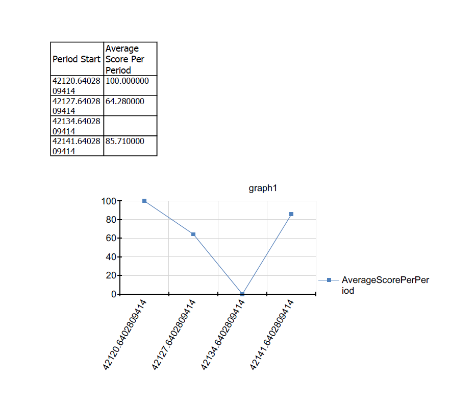 I've recreated the problem using the Telerik Report Designer, following the steps shown in the video. I'm not sure what code you would like me to upload. The stored proc we're using returns a float from a ROUND call for the column that has the null value, and the query shows NULL where expected when running the stored proc in SQL Server Management Studio. I've attached an export from the report showing the null value plotted at zero, rather than being an approximation. I did notice that my report has an actual point plotted for the null value, where your video doesn't show a point for the null value. I'm guessing the report designer for some reason thinks the null value returned from the stored proc is more like an empty string?