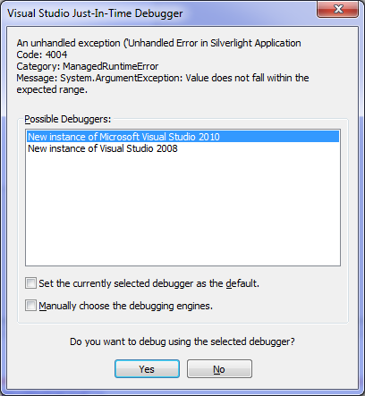 If I remove the UserControl, the edit works without a problem. Keep it in there, IE crashes with a ManagedRunTimeError 4004