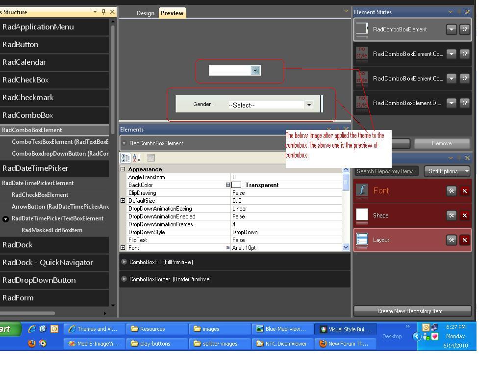 I'm using the image for the arrow button of combo box.when the preview of combo box is seen, the arrow button is looking good but when that theme is applied to the control then it is looking differently.