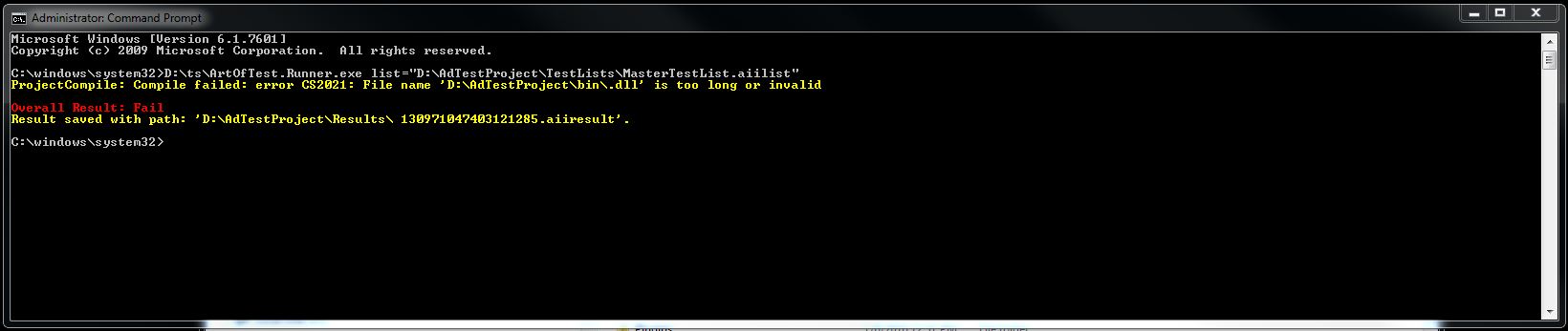 Hi, when I try and run a test list from the command prompt with the runner I get the following error: