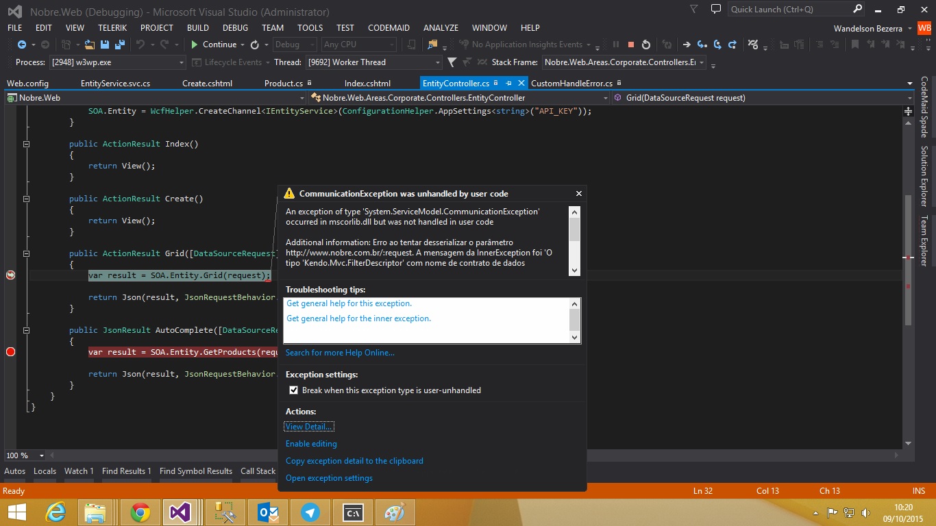"Error while trying to deserialize the parameter http://www.nobre.com.br/:request The InnerException message was 'Type' Kendo.Mvc.FilterDescriptor 'with data contract name' FilterDescriptor:. Http: / /schemas.datacontract.org/2004/07/Kendo.Mvc 'is not expected to consider the use of DataContractResolver or add some types not known statically to the list of known types -. for example, using the KnownTypeAttribute attribute or adding them to the list of known types passed to the DataContractSerializer. '. See InnerException for more details. "}
