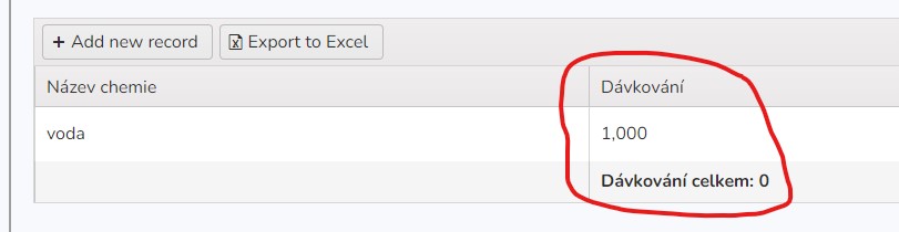 .ClientFooterTemplate("Dávkování celkem: #=sum#");
