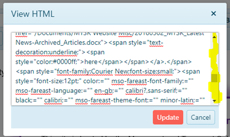 The scrollbars are missing from the 'View HTML' window. Even the online demo is the same.