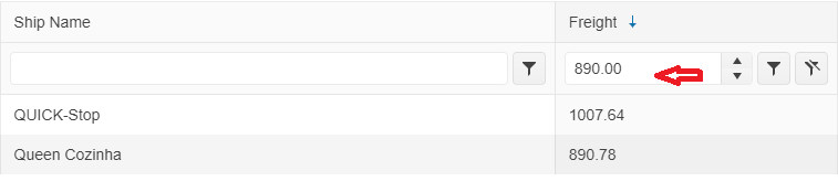 If type one or more letters in the "First Name" field filter it will suggest all corresponding values to the dataSource even the ones that are not being displayed in the grid due to the applied filter in the column Surname.