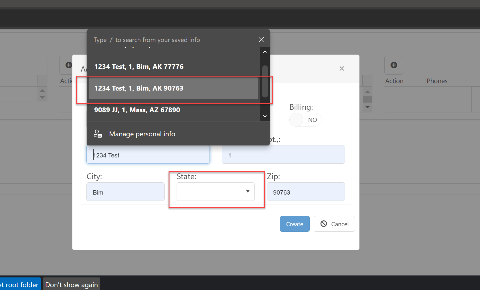 I am not able to get the State dropdown menu to work with the browser autocomplete for address using Kendo control. See the screenshot below.