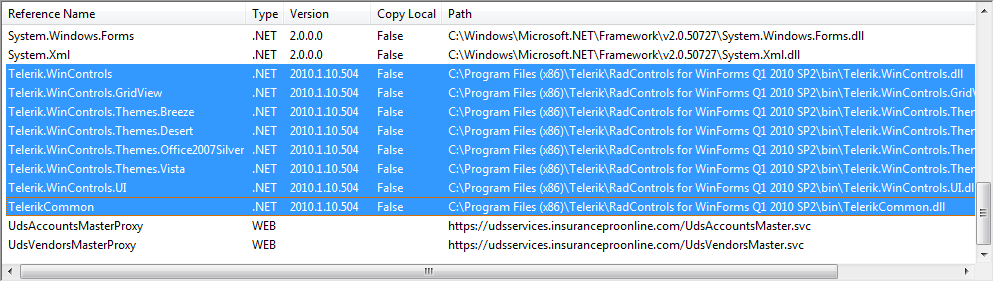 I am using Telerik Winform controls v.2010.1.10.504. When in debug mode, the project works fine and builds without any issues. When I create the exe and after I install it on the computer. I then get the attached errors when trying to load the program. I saw in another thread that I need to reference Telerik.WinControls.UI. When I view the references, I see that it is in there with the correct path as seen in the picture attached. Do you have any suggestions as to what the problem may be or any other trouble shooting techniques to fix this error?