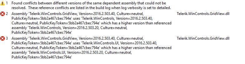Assembly 'Telerik.WinControls.GridView, Version=2016.2.503.40, Culture=neutral, PublicKeyToken=5bb2a467cbec794e' uses 'Telerik.WinControls, Version=2016.2.503.40, Culture=neutral, PublicKeyToken=5bb2a467cbec794e' which has a higher version than referenced assembly 'Telerik.WinControls, Version=2016.2.503.20, Culture=neutral, PublicKeyToken=5bb2a467cbec794e' c:\Program Files (x86)\Telerik\UI for WinForms Q2 2016\Bin40\Telerik.WinControls.GridView.dll