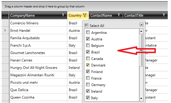 We are seeing Country column with Name. This grid is showing only countries what available in the Grid data source.