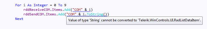 RadDropDownList1.Items.Add(TryCast("COM" & i.ToString, RadListDataItem))