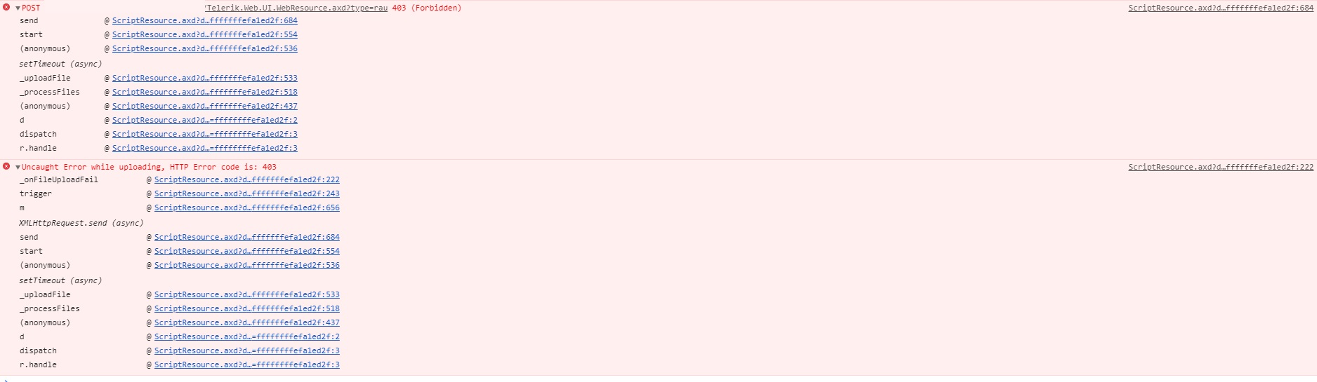 My asyncupload control is dynamically added during code runtime inside Page_Init. After my asyncupload validate success, the input is still showing red. opening the console i saw the error as shown in the attached file. Not sure if it is relevant, this code is created as a visual web part(farm solution) for Sharepoint 2016
