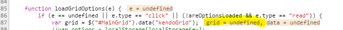 I am attempting to use setOptions() on a grid to save changes a user makes to a grid (page size, page, filter, sort, etc.) then restore those changes when the user comes back to the page. I see numerous examples of this working in forum threads but I cannot get the examples working so I must be doing something wrong. The saving of the grid options seems to be working fine but when I return to the page I'm getting "undefined" when I try to get a reference to my grid (see attached image). Any help would be appreciated as I have spent a good day on this and cannot get it working.
