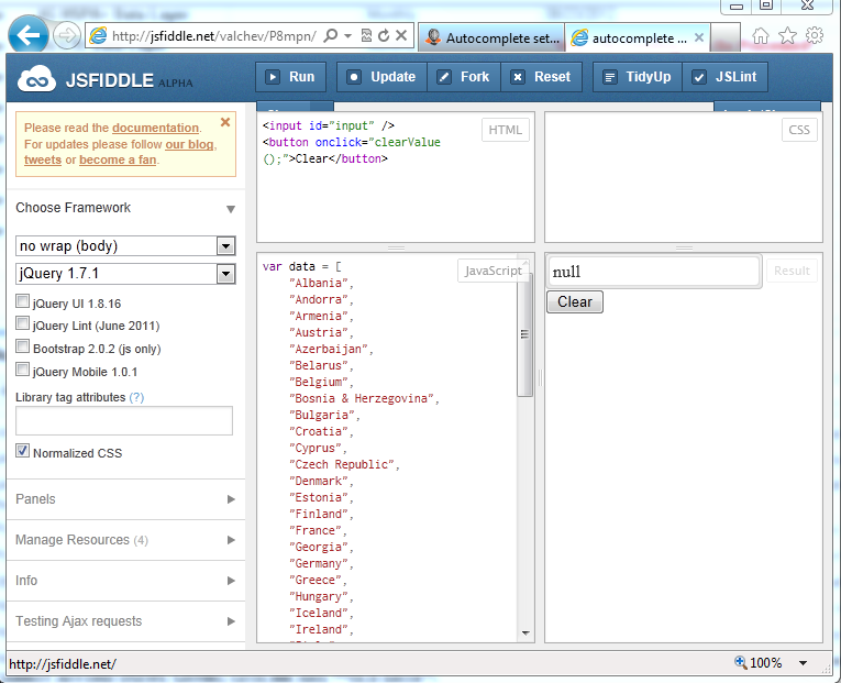 I have Autocomplete box with watermark text . I'm clearing the Autocomplete using value method and excepting Watermark to reappear after clear. None of these are working... i'm missing something ?