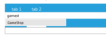 <div> <telerik:RadTabStrip ID="RadTabStrip1" runat="server" MultiPageID="RadMultiPage1"> <Tabs> <telerik:RadTab Text="TAB 1" PageViewID="RadPageView1" /> <telerik:RadTab Text="TAB 2" PageViewID="RadPageView2" /> </Tabs> </telerik:RadTabStrip> <telerik:RadMultiPage ID="RadMultiPage1" runat="server" SelectedIndex="0"> <telerik:RadPageView ID="RadPageView1" runat="server"> <telerik:RadAutoCompleteBox ID="RadAutoCompleteBox1" runat="server" DataSourceID="ds" DataTextField="Name" DataValueField="Id" /> </telerik:RadPageView> <telerik:RadPageView ID="RadPageView2" runat="server"> ABC </telerik:RadPageView> </telerik:RadMultiPage></div><div> <telerik:RadTabStrip ID="RadTabStrip2" runat="server" MultiPageID="RadMultiPage2"> <Tabs> <telerik:RadTab Text="TAB 3" PageViewID="RadPageView3" /> <telerik:RadTab Text="TAB 4" PageViewID="RadPageView4" /> </Tabs> </telerik:RadTabStrip> <telerik:RadMultiPage ID="RadMultiPage2" runat="server" SelectedIndex="0"> <telerik:RadPageView ID="RadPageView3" runat="server"> ABC </telerik:RadPageView> <telerik:RadPageView ID="RadPageView4" runat="server"> <telerik:RadAutoCompleteBox ID="RadAutoCompleteBox2" runat="server" DataSourceID="ds" DataTextField="Name" DataValueField="Id" /> </telerik:RadPageView> </telerik:RadMultiPage> <asp:SqlDataSource ID="ds" runat="server" ConnectionString="<%$ ConnectionStrings:ConnectionStringDB %>" DataSourceMode="DataSet" SelectCommand="SELECT Id, Name FROM Table;" /></div>