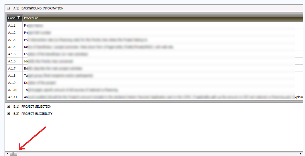 I'm afraid this is not what I mean. Please take a look at the attachment. I need the column that ends at the red arrow to be expanded until the end of the grid, that is until the yellow arrow.