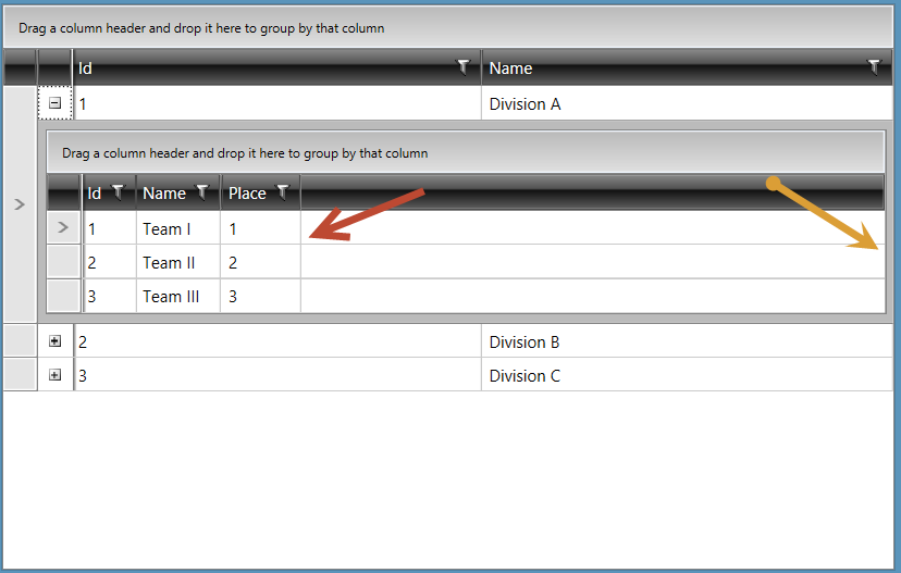 I have a Grid nested inside another one using RadGridView.ChildTableDefinitions. I cannot make the nested grid to fit it's columns to the width of the parent so that I don't have scroll bars (please see screenshot). I tried setting ColumnWidth to "Auto" for both grids but this didn't help.