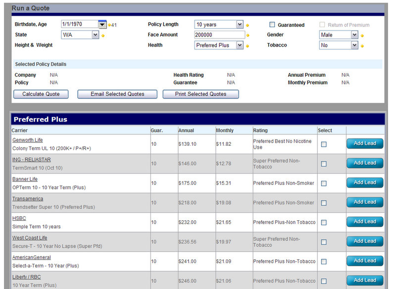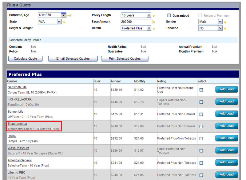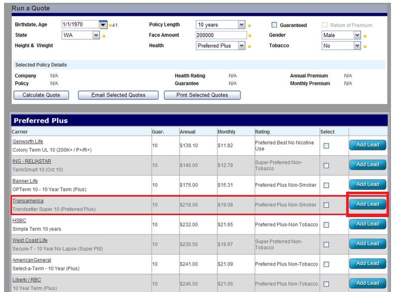 This is made all the more difficult due to the fact that the names of the button/checkbox controls are not specific to the carriers or the forms. The "Add Lead" button that corresponds to Transamerica in the DataGrid will have an id of something like "StandardPlusDG_ctl06_SelectImage", a name that is specific to the position on the grid and could hence be used to select an entirely different carrier when the system is updated with the latest pricing schemes for our carriers. Similarly, a "Buyer's Guide" form's checkbox will have an id of something like "FormsRepeater_ctl01_FormCB", which again could be used to refer to an entirely different form after a system update.