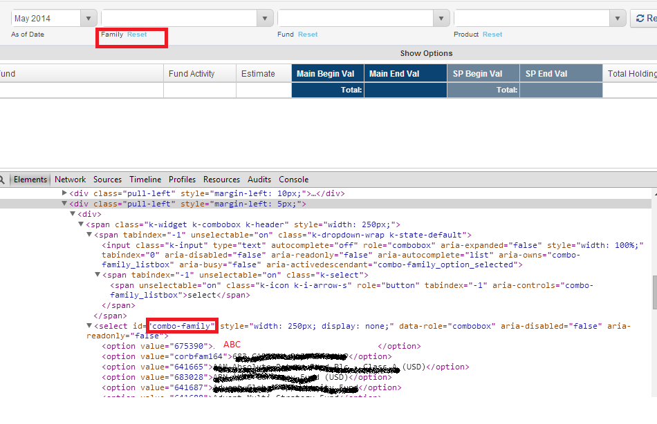 In attached document, Code is for family drop down List, So if I want to select value from Family Drop Down List ,say for example option value "ABC", How do i select as a coded step?
