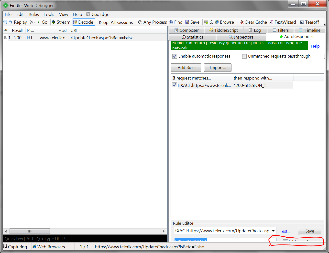 What version of Fiddler (Help > About) are you using?