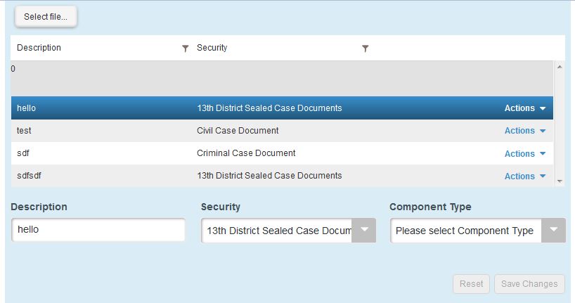Reset and Save Changes are working buttons that work with our model to ensure validation.