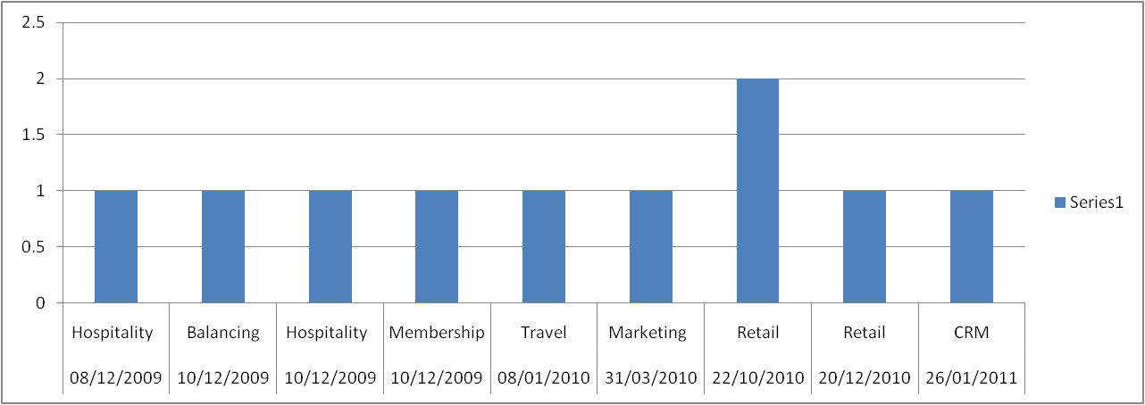 If you have a look at the attached, what we are trying to achieve is the date across the bottom, then bars for each of the modules, so on the 10/12/2009, there would be three bars one for balancing, hospitality and membership.