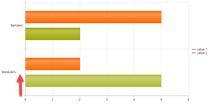 If the category includes an ampersand the position of the label will be broken because there is too much space between label and chart axis. This issue does not occur when using the default label.