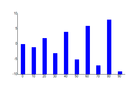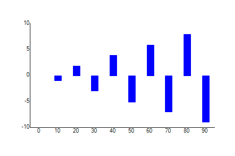 Imports Telerik.ChartingImports Telerik.WinControlsImports Telerik.WinControls.UIPublic Class BarGraphExample1 Public Sub BuildChart() Dim chart1 As RadChartView 'build dataset Dim data As New List(Of TestGenChartItem) For x = 0 To 9 Dim d = x * 10 If x Mod 2 Then data.Add(New TestGenChartItem With {.Value = x * -1, .Category = d}) Else data.Add(New TestGenChartItem With {.Value = x, .Category = d}) End If Next 'create chart and x axis chart1 = New RadChartView() Dim xAxis As New CategoricalAxis() xAxis.AxisType = Telerik.Charting.AxisType.First xAxis.MajorTickInterval = 1 xAxis.LabelFitMode = AxisLabelFitMode.None xAxis.GapLength = 0.6 xAxis.TickLength = 0 xAxis.StartPositionValue = 0 chart1.Axes.Add(xAxis) 'create y axis Dim yAxis = New Telerik.WinControls.UI.LinearAxis() yAxis.AxisType = Telerik.Charting.AxisType.Second yAxis.HorizontalLocation = AxisHorizontalLocation.Left yAxis.TickLength = 0 chart1.Axes.Add(yAxis) 'create bar series Dim barSeries = New Telerik.WinControls.UI.BarSeries() barSeries.Name = "p&l" barSeries.LegendTitle = "p&l" barSeries.BackColor = Color.Blue barSeries.BorderColor = Color.Blue barSeries.CombineMode = ChartSeriesCombineMode.None barSeries.DataSource = data barSeries.BorderWidth = 2 barSeries.ValueMember = "Value" barSeries.CategoryMember = "Category" barSeries.HorizontalAxis = CType(chart1.Axes(0), Telerik.WinControls.UI.CategoricalAxis) barSeries.VerticalAxis = CType(chart1.Axes(1), Telerik.WinControls.UI.LinearAxis) chart1.Series.Add(barSeries) 'save chart Dim fileName = Guid.NewGuid.ToString + "__" + FTNUtilities.Util.FileSafeDateFormat(Now) + ".png" SaveChartToDisk(fileName, chart1) Process.Start("explorer.exe", fileName) End Sub Public Sub SaveChartToDisk(fileName As String, c As RadChartView) Try ThemeResolutionService.AllowAnimations = False If (System.IO.File.Exists(fileName)) Then System.IO.File.Delete(fileName) End If Using bmp = New System.Drawing.Bitmap(c.ClientSize.Width, c.ClientSize.Height) c.DrawToBitmap(bmp, c.Bounds) Using stream = New System.IO.FileStream(fileName, System.IO.FileMode.Create, System.IO.FileAccess.Write) bmp.Save(stream, System.Drawing.Imaging.ImageFormat.Png) End Using End Using Catch ex As Exception Throw End Try End SubEnd ClassPublic Class TestGenChartItem Property Value As Double Property Category As String Public Sub New() End Sub Public Sub New(cat As String, val As Double) Category = cat Value = val End SubEnd Class0