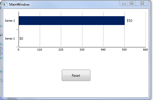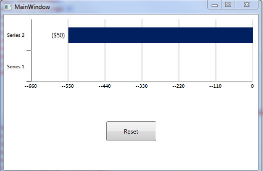 <UserControl x:Class="WpfApplication1.ChartControl" mc:Ignorable="d" xmlns:telerik="http://schemas.telerik.com/2008/xaml/presentation" xmlns:telerik.chart="clr-namespace:Telerik.Windows.Controls;assembly=Telerik.Windows.Controls.Charting" xmlns:telerik.charting="clr-namespace:Telerik.Windows.Controls.Charting;assembly=Telerik.Windows.Controls.Charting" d:DesignHeight="300" d:DesignWidth="300"> <UserControl.Resources> <Style x:Key="AxisXLineStyle" TargetType="Line"> <Setter Property="Stroke" Value="Black" /> <Setter Property="StrokeThickness" Value="1" /> </Style> <Style x:Key="AxisYLineStyle" TargetType="Line"> <Setter Property="Stroke" Value="Black" /> <Setter Property="StrokeThickness" Value="1" /> </Style> <Style x:Key="AxisXStyle" TargetType="telerik.charting:AxisX2D"> <Setter Property="AxisLineStyle" Value="{StaticResource AxisXLineStyle}" /> </Style> <Style x:Key="AxisYStyle" TargetType="telerik.charting:AxisY2D"> <Setter Property="AxisLineStyle" Value="{StaticResource AxisYLineStyle}" /> </Style> <Style x:Key="RadChartDefaultStyle" TargetType="telerik.chart:RadChart" > <Setter Property="Background" Value="Transparent" /> <Setter Property="BorderBrush" Value="Transparent" /> <Setter Property="BorderThickness" Value="0" /> <Setter Property="Margin" Value="0" /> <Setter Property="HorizontalAlignment" Value="Stretch" /> <Setter Property="HorizontalAlignment" Value="Stretch" /> <Setter Property="telerik:StyleManager.Theme" Value="Metro" /> </Style> <Style x:Key="ChartAreaDefaultStyle" TargetType="telerik.charting:ChartArea" > <Setter Property="Background" Value="Transparent"/> <Setter Property="EnableAnimations" Value="True"/> <Setter Property="AxisXStyle" Value="{DynamicResource AxisXStyle}"/> <Setter Property="AxisYStyle" Value="{DynamicResource AxisYStyle}"/> <!--<Setter Property="ItemOverlapPercent" Value="-20" />--> <Setter Property="ItemWidthPercent" Value="50" /> </Style> <Style x:Key="GridLineStyle" TargetType="Line"> <Setter Property="Stroke" Value="#D7D7D7" /> <Setter Property="StrokeThickness" Value="2" /> </Style> <Style x:Key="AxisItemLabelStyle" TargetType="TextBlock"> <Setter Property="FontSize" Value="10" /> <Setter Property="FontWeight" Value="SemiBold" /> <Setter Property="Foreground" Value="Black" /> <Setter Property="HorizontalAlignment" Value="Right" /> <Setter Property="Margin" Value="0,0,3,0" /> </Style> <telerik.charting:BrushCollection x:Key="ChartPaletteBrushes2" > <SolidColorBrush Color="#002060"/> <SolidColorBrush Color="#FFC000"/> </telerik.charting:BrushCollection> </UserControl.Resources> <Grid> <telerik:RadChart Grid.Row="0" Style="{DynamicResource RadChartDefaultStyle}" ItemsSource="{Binding Data}" Name="chart" LayoutUpdated="chart_LayoutUpdated"> <telerik:RadChart.DefaultView> <telerik:ChartDefaultView ChartLegendPosition="Bottom" > <telerik:ChartDefaultView.ChartArea > <telerik:ChartArea Style="{DynamicResource ChartAreaDefaultStyle}" LabelFormatBehavior="HumanReadable" LegendName="Legend1" PaletteBrushes="{DynamicResource ChartPaletteBrushes2}" SmartLabelsEnabled="True"> <!--<telerik:ChartArea.Annotations> <telerik.charting:CustomGridLine YIntercept="0" StrokeThickness="2" Stroke="Black" > </telerik.charting:CustomGridLine> </telerik:ChartArea.Annotations>--> <telerik:ChartArea.AxisY > <telerik:AxisY AutoRange="True" IsZeroBased="True" PlotAreaAxisVisibility="Visible" MajorTicksVisibility="Collapsed" MajorGridLinesVisibility="Visible" MinorTicksVisibility="Collapsed" StripLinesVisibility="Collapsed"> <telerik:AxisY.AxisStyles > <telerik:AxisStyles GridLineStyle="{DynamicResource GridLineStyle}" ItemLabelStyle="{DynamicResource AxisItemLabelStyle}" /> </telerik:AxisY.AxisStyles> </telerik:AxisY> </telerik:ChartArea.AxisY> <telerik:ChartArea.AxisX> <telerik:AxisX IsZeroBased="True" MajorGridLinesVisibility="Collapsed" StripLinesVisibility="Collapsed"> <telerik:AxisX.AxisStyles> <telerik:AxisStyles ItemLabelStyle="{DynamicResource AxisItemLabelStyle}"/> </telerik:AxisX.AxisStyles> </telerik:AxisX> </telerik:ChartArea.AxisX> </telerik:ChartArea> </telerik:ChartDefaultView.ChartArea> <telerik:ChartDefaultView.ChartLegend > <telerik:ChartLegend Name="Legend1" Visibility="Collapsed"/> </telerik:ChartDefaultView.ChartLegend> </telerik:ChartDefaultView> </telerik:RadChart.DefaultView> <telerik:RadChart.SeriesMappings > <telerik:SeriesMapping > <telerik:SeriesMapping.SeriesDefinition> <telerik:HorizontalBarSeriesDefinition TextBlock.TextAlignment="Right" ItemToolTipFormat="#VAL{C0}" ItemLabelFormat="#VAL{C0}" SeriesItemLabelStyle="{DynamicResource ChartSeriesItemLabelStyle}" ShowItemToolTips="True"> <telerik:HorizontalBarSeriesDefinition.Appearance > <telerik:SeriesAppearanceSettings Foreground="Black" /> </telerik:HorizontalBarSeriesDefinition.Appearance> <telerik:HorizontalBarSeriesDefinition.InteractivitySettings> <telerik:InteractivitySettings SelectionMode="Multiple" SelectionScope="Item" /> </telerik:HorizontalBarSeriesDefinition.InteractivitySettings> </telerik:HorizontalBarSeriesDefinition> </telerik:SeriesMapping.SeriesDefinition> <telerik:SeriesMapping.ItemMappings> <telerik:ItemMapping FieldName="Balance" DataPointMember="YValue"/> <telerik:ItemMapping FieldName="AcctCatTyp" DataPointMember="XCategory" /> </telerik:SeriesMapping.ItemMappings> </telerik:SeriesMapping> </telerik:RadChart.SeriesMappings> </telerik:RadChart> </Grid></UserControl>