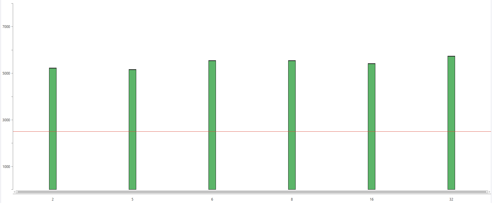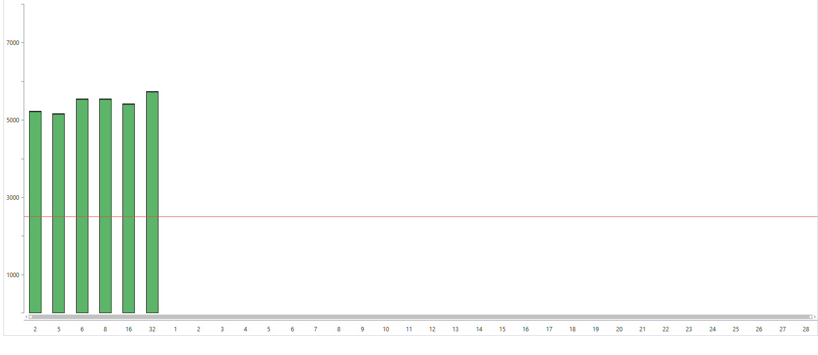 In RadChartView there is no notion for series alignment. When you have a BarSeries, which is a categorical series, the chart will create a category slot on the CategoricalAxis for each distinct category value. In your case those are 2, 5, 6, 8, 16, 32.